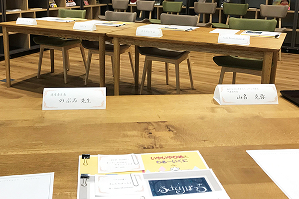 当日はあいにくの天候でしたが、選考委員長である絵本作家の「のぶみ」氏と受賞者の3名とそのご家族に会場へお越しいただき、のぶみ氏から受賞者の皆様へ熱いエールをお贈りいただきました。その様子をお伝えします。
