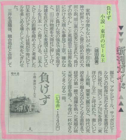 <パブリシティのお知らせ>『負けず 小説・東洋のビール王』端田晶様