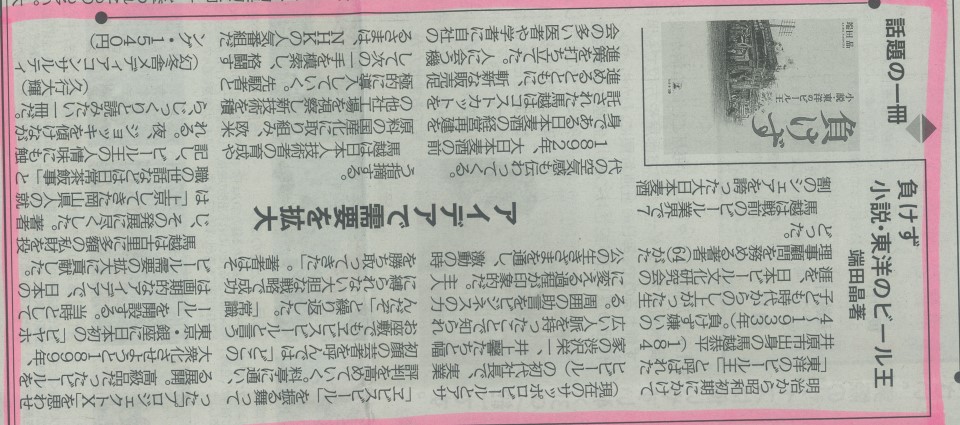 <パブリシティのお知らせ>『負けず 小説・東洋のビール王』端田晶様