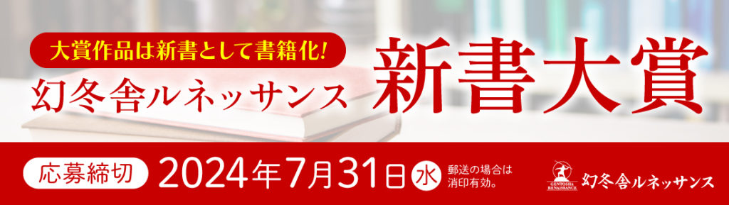 大賞受賞作は幻冬舎ルネッサンスから正式に「新書」として出版されます。